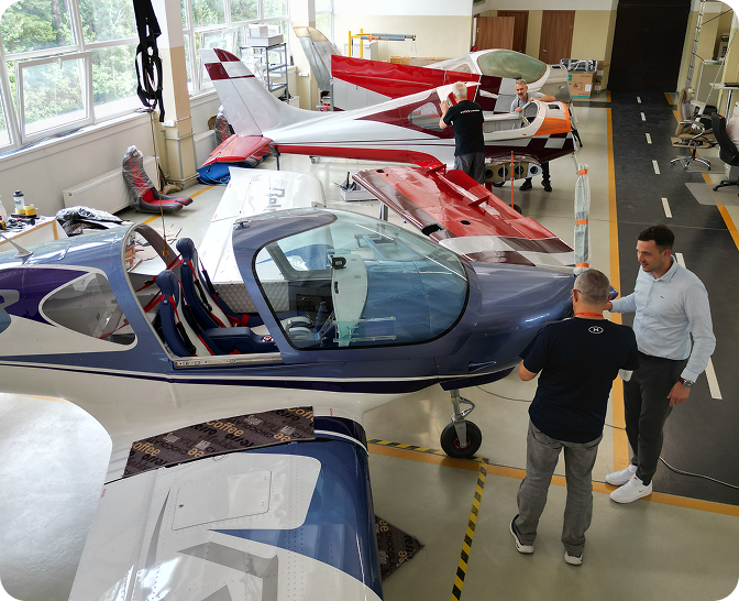 We are constantly working on safe innovations implementation in our aircraft. We use only professional equipment in our manufacturing.